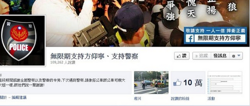 民眾挺警成立臉書團,人數已破10萬人。(圖為“無限期支持方仰寧、支持警察”臉書團)