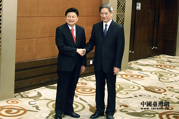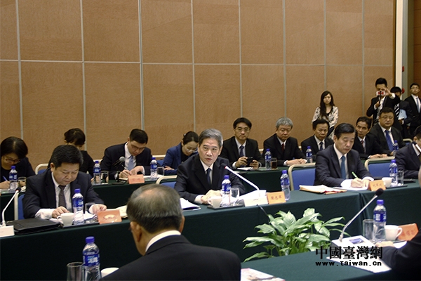 國務院臺辦主任張志軍18日在北京與來訪的臺灣縣市長參訪團舉行座談。(中國臺灣網 李天祺 攝)