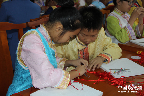 滿族學堂里孩子們正認真地學習編織中國結(jié)(中國臺灣網(wǎng) 楊永青 攝)