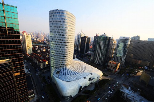 2013年12月27日,拍攝于上海市仙霞路遵義路交叉口,因設計外形酷似馬靴被網友戲謔為“馬靴樓”的“尚嘉中心”