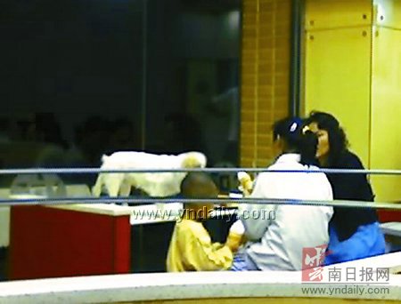 你能想象一只寵物狗站在快餐店的餐桌上與人共同進(jìn)餐嗎?偏偏在前天晚上被市民張先生遇上了,氣憤的他也顧不上店里不準(zhǔn)拍照的警示牌,拍下了投訴照片,發(fā)到本報(bào)彩信新聞平臺(tái)。