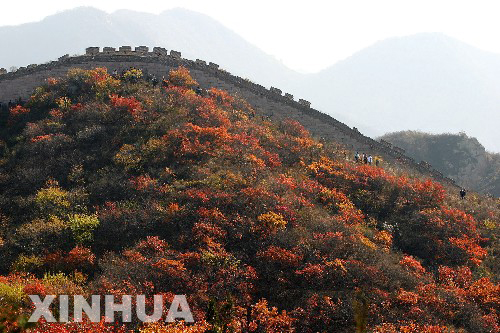 新華網北京9月26日電(記者 劉浦泉)北京秋天最早能看到紅葉的八達嶺國家森林公園26日迎來今秋第一批觀賞紅葉的游客。漫步紅葉嶺,游客可近距離盡情欣賞殘長城與紅葉的神韻。