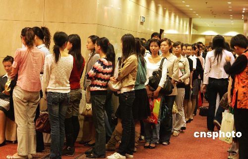 10月13日,澳門航空在上海舉行乘務員招聘,二十多個名額卻吸引千余名上海年輕男女前往應聘。 中新社發 潘索菲 攝