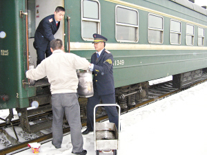 “原來我們以為最多一晚上就可以到廣州,列車只準備了50多名乘務員的口糧,100多份盒飯。”隨著晚點時間一再推移,火車上開始斷糧了,很多旅客準備不足,隨身帶的干糧也越來越少,車廂內的旅客開始躁動起來,“我們與車站聯系,發現這個小站也已經斷電斷糧,最要命的是斷水了,車上1100多名旅客吃什么成了我們最先遇到的一個難題。”黎智勇告訴記者,他們立即派人聯系車站,“幸運的是我們找到了一輛車,搭著我們從小路趕到縣城,采購了一大批糧食,當時路已經冰封了,本來來回就半個小時,結果走了1個多小時。”