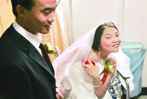 擁有像正常人一樣的婚禮,是王丹的夢想。她還必須努力克制神經性痙攣,費勁地給新郎戴上結婚戒指。