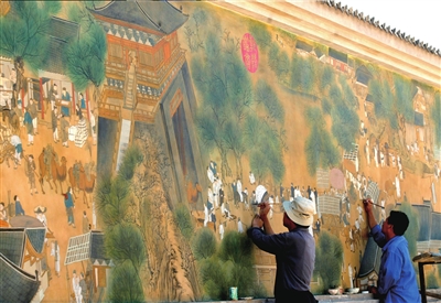 4農民畫家繪成壁畫《清明上河圖》(圖)