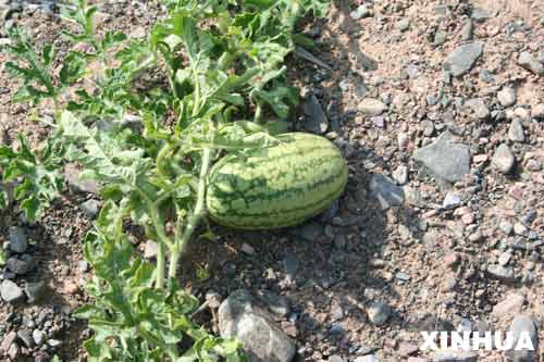 在石頭縫里生長的硒砂瓜。 新華網王苗苗 攝
