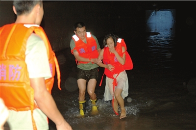 據張女士回憶,兒子首先被水淹沒,她彎腰去抱時也嗆了水,隨后她拼命打開車門,扒著車身才露出頭來。當她和同車逃出的兩親戚撈出兩歲的兒子時,兒子已經沒什么反應。