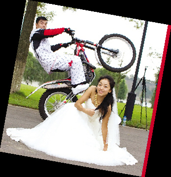 新婚的馬濤昨天接受了本報的采訪,對于這場讓大家津津樂道的婚禮,他自己也非常得意,“跟最愛的人結婚,我也想融入我們最執著的東西。技巧自行車、摩托車,還有柔術格斗,我們玩的都是現在最流行的國際頂級極限運動”。