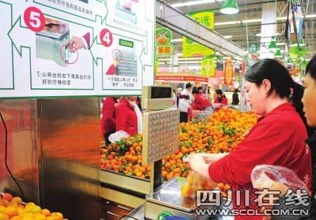 成都一超市推出的自助磅秤操作系統(tǒng),考驗市民誠信自律