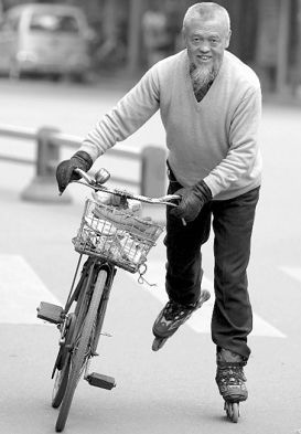 高永祿出生于1941年春天,屬蛇。用他自己的話講,自己出生的時候春意盎然,蛇類剛結束冬眠,神經興奮,于是注定了他自己一輩子都是這副活潑性格。從前年開始,他迷上輪滑,還迷上邊滑邊跳舞。為了看望老母親,他從雙流滑到成都。昨日傍晚,看見溜著旱冰鞋提著菜籃子出去買菜的他,路過的人都親切地叫他一聲“老頑童”。