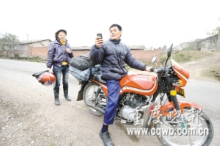 當天上午,丁小兵買了一輛摩托車,把兩件行李綁在后座上,載著妻子踏上1400公里的回家路。為防迷路,他花1600元買了一部帶GPS衛星導航功能的手機。