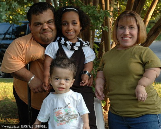 35歲的Tina和丈夫David在一個侏儒網站上相遇并結婚,兩人有一兒一女,9歲的女兒Raegan和3歲的兒子Ryan。Raegan是Tina和前夫所生。而Tina和David兩人都是侏儒,在一起無法生育,于是他們從阿爾巴尼亞的一家孤兒院中收養了侏儒男孩Ryan。