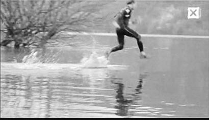 網(wǎng)上文章稱:“3名外國小伙在一個視頻里把中國武俠小說里的輕功 ‘水上漂’展現(xiàn)得淋漓盡致。視頻中,他們在葡萄牙一個湖上賽跑,在水面上奔跑了50多米后才落水。他們聲稱這是一種挑戰(zhàn)地心引力理論的新型極限運動。視頻上傳到某網(wǎng)站后,在短短兩周內(nèi)吸引了超過200多萬人次瀏覽。視頻看起來可信度極高,不少質(zhì)疑它是騙局的網(wǎng)友也不得不承認,它拍得很高明。”