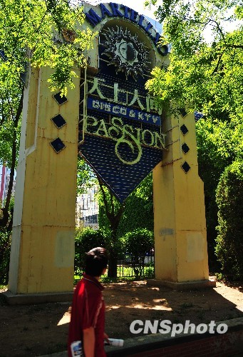 2010年5月19日,北京東三環路邊,曾經輝煌一時的“天上人間”夜總會已變得蕭條冷落。 中新社發 樊甲山 攝