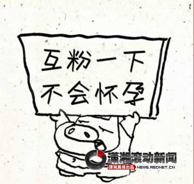 核心提要:一只憨態可掬的小豬舉了一個牌子:“互粉一下,不會懷孕”。這一張詼諧的圖片反映的是網絡交往的一個新趨勢:“互粉”。“‘互粉’不僅給網友帶來粉絲,還帶來了自信、樂觀和奉獻的生活態度。”新浪微博資深互粉網友“煙雨樓臺”表示。