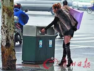 網友“秋天騎士”則看得更為仔細。他稱,4月26日的一系列照片已經稱“上海環保妹走紅網絡”。但他一看,卻發現稱呼照片中女孩為“環保妹”的唯一理由,僅僅是女孩在路上拾起一名路人扔下的衛生紙,隨后丟入垃圾桶。在他看來,照片斧鑿的痕跡非常明顯——最讓他受不了的,則是圖片中的“環保妹”不僅化了濃妝,而且還披著一件類似裘皮的毛披肩,哪里談得上環保?