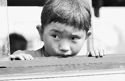 河南南陽(yáng)丹江口庫(kù)區(qū),搬遷車上的兒童扭頭回望家鄉(xiāng)的方向。沙 浪攝(人民圖片)