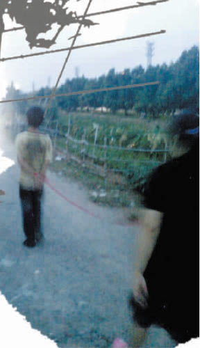 只見李爸爸將李軍從電線桿上解下來后,雙手仍被反綁,并有一條紅色的布條連著。李爸爸拉著繩子的另一頭。“回去!”李爸爸生氣地發(fā)號施令。