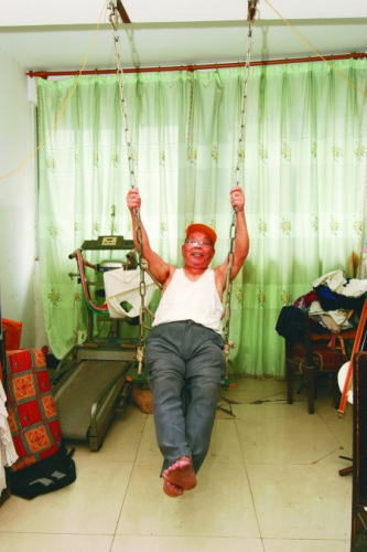 李海和在家中鍛煉身體。本組圖片見(jiàn)習(xí)記者 張永波 攝