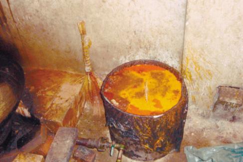當(dāng)晚19時(shí),在造化街道后丁香村,執(zhí)法人員幾經(jīng)周折找到了這個(gè)黑熟食加工點(diǎn)。推開大門,記者就被這里的場景驚呆了。里面臭氣熏天,蒼蠅蚊子亂飛。封閉的平房里好像桑拿房一樣。房間墻壁都發(fā)了霉,一口大黑鍋敞著個(gè)蓋,里面燉著豬頭肉、豬蹄等,兩個(gè)工人用鏟子正在不停地?cái)噭?dòng)。污濁又潮濕的地面上隨意扔著肉骨頭。幾個(gè)水槽里存放著幾盆熟食原料。水是渾濁的,里面漂浮著不少死蒼蠅。