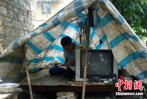 此后,吳萬杰的父母則擠在不到五平米的小廚房里,拿門板當(dāng)床入睡。而吳萬威便一直“蝸居”在為躲避洪水而建的樹上“小棚”上。不久,吳萬杰高考完回家,因無處居住,吳萬威便在撿來些木棍、木板又幫吳萬杰在樹上搭了個(gè)棚,并在棚內(nèi)拉上了電燈。兩兄弟就這樣在樹上住了近半個(gè)月。有樹下過路人嘲笑他們住“鳥巢”,也有好心人提醒他們:電燈線路沿著樹感極易導(dǎo)電,打雷下雨天住在很危險(xiǎn)。于是,兩人又將樹上的“小棚”搬到地上。然而地面泥土潮濕,“小棚”空間過于狹小加上蚊蟲叮咬厲害,弟弟便讓哥哥萬杰進(jìn)廚房與父母同住。而弟弟自己一個(gè)人至今依舊“蝸居”在外面的小棚里。在此期間,吳萬杰接到了來自長(zhǎng)江大學(xué)的金融學(xué)專業(yè)錄取通知書。