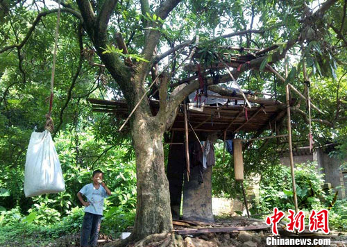 2003年時(shí),吳萬杰家在玉州區(qū)城西街道的泥土房被大雨沖垮。房子倒塌后,吳萬杰一家便寄宿在已經(jīng)過世的外婆家僅剩的幾間泥磚房里。今年6月,連夜大雨帶來的洪水再次沖走了他們賴以生存的房子。眼看著洪水漲到家里窗戶以上,留守家中的弟弟吳萬威急中生智抽出家里的床板,在屋子旁的龍眼樹上搭建了個(gè)臨時(shí)的小棚。吳萬杰的父母和弟弟就是躲在樹上這個(gè)小棚才得以堅(jiān)持到消防員前來救援的。洪水快要消退時(shí),除了廚房,其余的房間已經(jīng)全部倒塌。