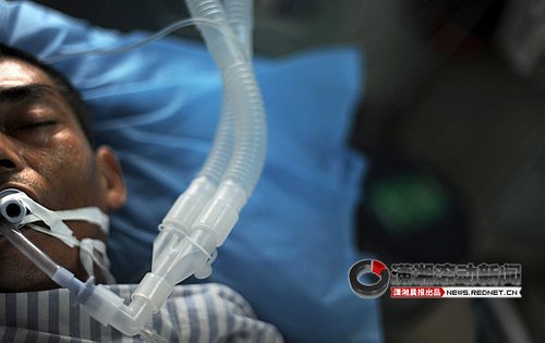 45歲的周道明,雙鬢已經斑白,眼睛深凹。前天下午,他做了3個小時腹部探查手術,切除將近1.5米長的小腸。這意味著,他的小腸壞死了一半。此外,彌漫性腹膜炎,感染性休克,急性腎功能不全和多器官功能衰竭,可能隨時剝奪他的生命。