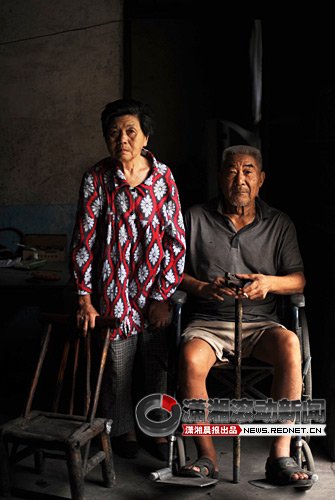 家門口,73歲的老父親坐在輪椅上,摳著小腿的癢處。里屋黑漆漆的,他的母親必須拄著長凳才能挪動身體。周道明的床上,是沒有被套的棉絮,以及一包價值1.8元的芙蓉煙。蚊香還剩半盤未燃盡。