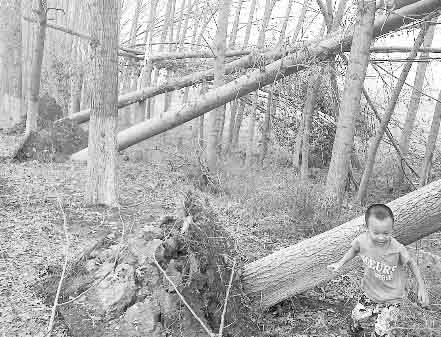 據(jù)了解,當(dāng)日凌晨6時(shí)30分至上午8時(shí),短短90分鐘時(shí)間,暴風(fēng)雨席卷了孟津多個(gè)鄉(xiāng)鎮(zhèn)。在多數(shù)受災(zāi)鄉(xiāng)鎮(zhèn),先是冰雹將農(nóng)民的塑料大棚砸破,之后暴雨灌入其中,將大棚沖壞;即將收獲的玉米,被大風(fēng)成片刮斷后,倒伏在地上,幾乎絕收;縣鄉(xiāng)道路上,水桶粗細(xì)的行道樹也被攔腰刮斷。粗大的樹干倒在道路上,只有動(dòng)用大型機(jī)械才能疏通。在村民家里,部分豬圈和院墻被傾倒的大樹砸壞。