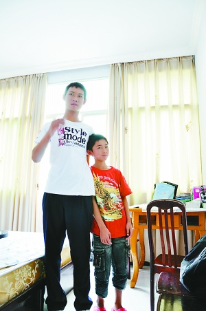 劉乾長得這么高,是不是遺傳?記者了解到,劉乾的父親劉國平身高1.70米,母親張鳳1.60米。同是一個父母生的哥哥、上大四的劉川身高只有1.72米,同歲的表弟王森林,比他矮40厘米。
