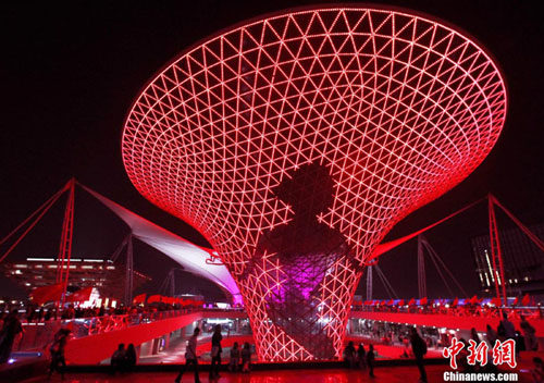10月5日,上海世博會(huì)入園人數(shù)持續(xù)上升,超過(guò)43萬(wàn)人次;入夜后風(fēng)清氣爽,巨大的彩燈塔為游人展示絢麗多彩的畫(huà)面。中新社記者 任晨鳴 攝