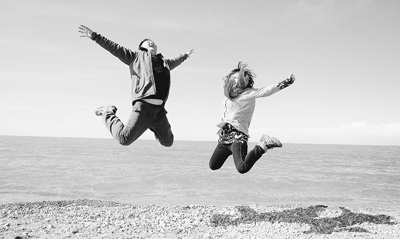 國(guó)慶長(zhǎng)假,兩名游客在青海湖畔縱身躍起。新華社記者 吳光于攝