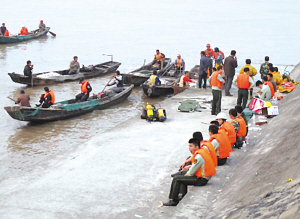 在翻滾的江水中,還有6個人若隱若現。一艘紹興的漁船剛好在附近水域作業,船上的人救起了一對落水的母女。