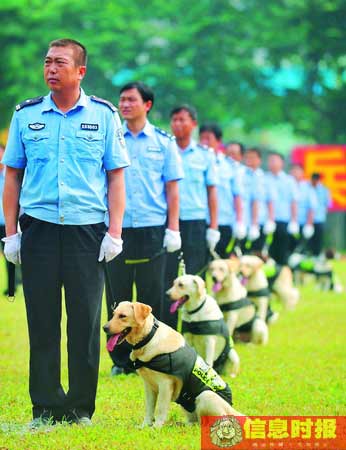 “這些萬中挑一的警犬全都身手不凡,其中35條是功勛犬,它們將在廣州亞運期間負(fù)責(zé)核心場館的搜爆、搜毒等安保工作。”據(jù)介紹,廣州亞運安保警犬技術(shù)團隊除廣州市100名帶犬警察及攜帶的100條工作犬外,還有來自23個省(區(qū)、市)的公安機關(guān)以及民航、邊防系統(tǒng)的210名帶犬警察及其攜帶的210條工作犬。他們當(dāng)中,有曾經(jīng)參加過2008年北京奧運會、2009年北京國慶防爆安檢工作中的帶犬警察和工作犬。