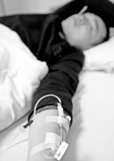 昨天下午,省中醫(yī)院急診科,記者見到詹曉同(化名)的時候,他正躺在病床上輸液,一臉平靜,嘴里還插著一根溫度計。