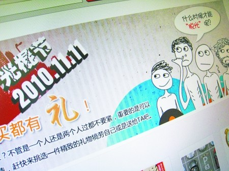 印有“11·11”、“單身光榮證”等字樣的“光棍T恤”、光棍煙盒、光棍徽章……在“光棍節”里,網店無疑是最瘋狂的。