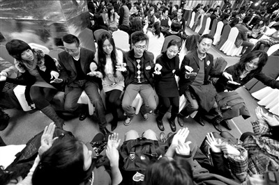 11月11日是“光棍節(jié)”,每到這個(gè)節(jié)日,單身男女們便高喊著“脫光”口號(hào),以各種形式聚會(huì)。昨晚,在恒通商務(wù)花園,強(qiáng)生、雀巢等世界500強(qiáng)外資及內(nèi)資企業(yè)的近500名單身員工參加了世紀(jì)佳緣相親會(huì),希望下一個(gè)“光棍節(jié)”時(shí)變?yōu)樾腋5摹半p截棍”。