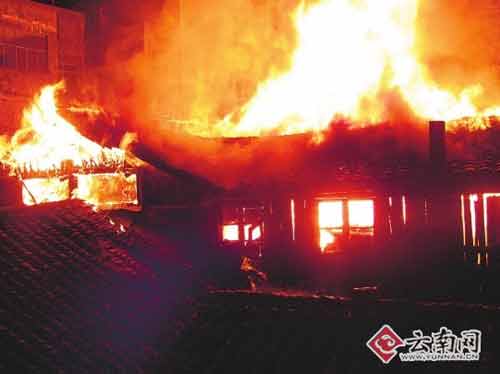 云南騰沖縣一四合院凌晨起火 房主跳井自救(圖)