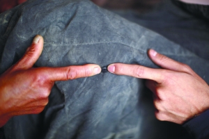 11月25日,云南瀘西縣,死者帶有槍眼的血衣。本報(bào)記者 王申 攝