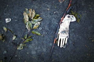 11月26日,云南瀘西縣小松地煤礦,槍擊現(xiàn)場(chǎng)遺留的醫(yī)用手套。本報(bào)記者 王申 攝