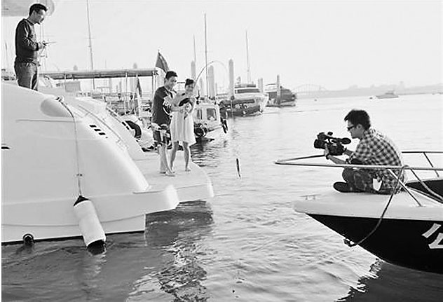前日(5日)下午,李小龍摟著新娘小葉,在廈門五緣灣海邊垂釣。一會兒,李小龍站起來飛快地收線,在小葉的歡呼聲中,釣起一尾活蹦亂跳的鱸魚。在夕陽的余輝中,這對小夫妻像孩童般在甲板上跳。二人腳下是他倆租來拍攝婚紗電影的道具——市值上千萬元的游艇。這樣的“道具”,他們一共租了五艘!按⿴屠!這是淡水魚!劇務搞什么名堂!”在小兩口的歡呼聲中,一個戴著漁夫帽的腦袋從對面的攝像機后探了出來,對著邊上的工作人員沉下臉來—— 每艘游艇一小時的租金近一萬元。因這個NG鏡頭浪費了一段時間,意味著得多“燒”一疊的錢。