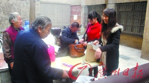 昨天下午,在“大雪”節氣的日子里,兩位女孩帶著小安和阿婆,在數位花都電大同學幫助下,提上大包小包的衣物和好心網友同學一起攢的錢,租了輛面包車趕往了位于花都區梯面鎮的救助站。在小安進去時,阿婆依在門口交代著,小安則抬起右手,放在嘴邊擺著姿勢與眾人告別。(記者歐陽晨攝影報道)