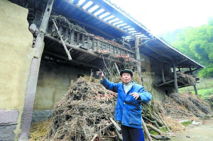 昨日,記者趕到大灣鎮空塘村6社彭友春家時,屋外堆滿了稻草,屋頂還空著少許瓦位。67歲的彭友貴在堂弟彭友春家門前徘徊,由于房門已被警方鎖住,他無法入內。前日中午那場3死3傷的慘劇就發生在這棟房內。