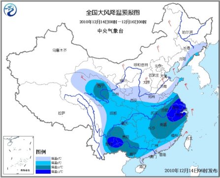 中央氣象臺12月14日06時繼續發布寒潮藍色預警:預計,12月14日08時至16日08時,西北地區中部和東部、吉林東部、遼寧東部、黃淮西部和南部、江淮、江漢、江南、華南大部、西南地區東部、云南中東部等地將出現6~8℃降溫,其中,青海東北部、江淮大部、江南中東部以及貴州西部、云南東部、廣西西部等地的部分地區降溫幅度可達10℃以上;上述大部地區有4~6級偏北風,江湖水面有5~7級偏北風。防御指南: