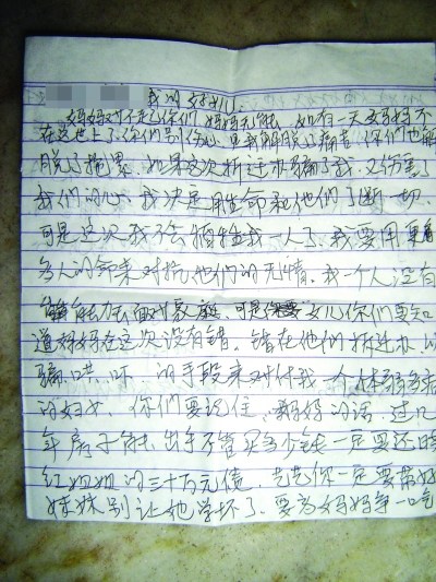 記者了解到,自從這件事情發(fā)生后,不少同學(xué)都在背后議論小晴。小晴變得很憂郁,管惠珍多次開導(dǎo)解釋都沒用。“看到孩子開始不吃飯,我晚上心里委屈,一個人在家里失聲痛哭。”12月8日晚上,萬般無奈的管惠珍想一死了之,于是,她寫好一封遺書留給兩個女兒,隨后服了兩瓶治療高血壓的藥。