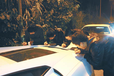 交警進行拍照取證后,責令四名駕駛員開著跑車到大隊部作進一步調(diào)查處理。