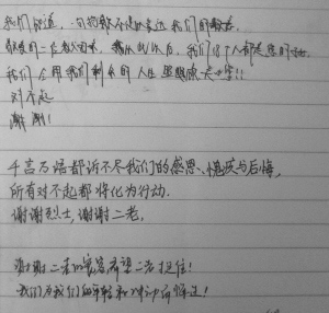 隨后,記者在人群中找到了還在哭泣的下跪女生劉臣辰。面對記者,小劉痛苦難當(dāng),什么話都說不出來,“我們是真的錯(cuò)了,他為了救我們而犧牲,我們對不起張寧海警官……”“我想對張大哥的父母說幾句……”隨后她和另兩名獲救女生在本報(bào)記者的記事本上對張寧海的父母寫下了懺悔之詞。