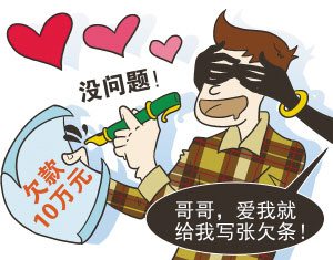 “哥哥,你若真愛我,就寫下10萬元欠條吧。”面對女友滿眼期望,巫山的李正(化名)說,當時他刷刷幾筆寫下10萬欠條,交給女友保管。女友說,結婚時就把它撕了。