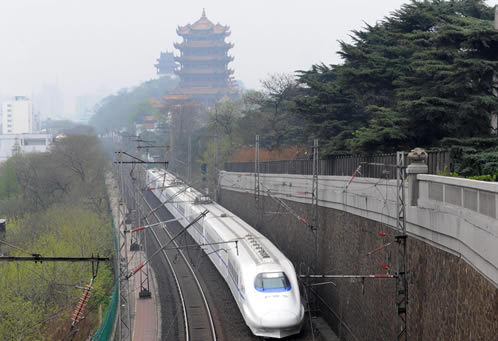 武漢至上海的D3012次動(dòng)車組經(jīng)過(guò)武漢黃鶴樓下駛上武漢長(zhǎng)江大橋。新華社記者 程敏 攝(資料圖)